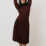 Elevate your style with this fitted jersey dress, featuring a classic turtleneck and elegantly draped ruched hem. Designed without pockets for a sleek, sophisticated silhouette
